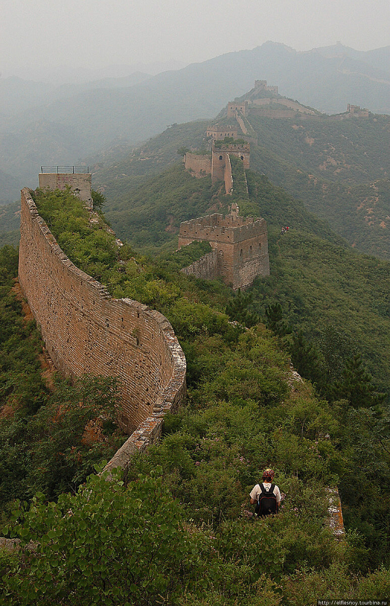 Мы с подругой сразу решили, что этот вариант не для нас, и отправились на участок Jinshanling, находящийся в 140 километрах от Пекина и славящийся, согласно LP, "естественным видом". Тот же LP (и не только он, кстати) утверждал, что отличным вариантом для смелых и выносливых будет совершить 15-километровый хайкинг вдоль Стены до участка Simatai, также безлюдного. Смелые и выносливые запаслись водичкой и печеньками и двинулись в путь.