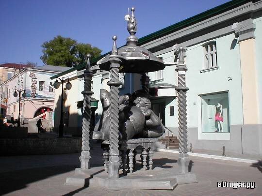 Памятник представляет собой скульптурно-архитектурную композицию. Она изображает лежащего в беседке на пуфике упитанного кота. У беседки шатровая крыша. На крыше шпиль в виде фигуры мыши, жонглирующей мячом.