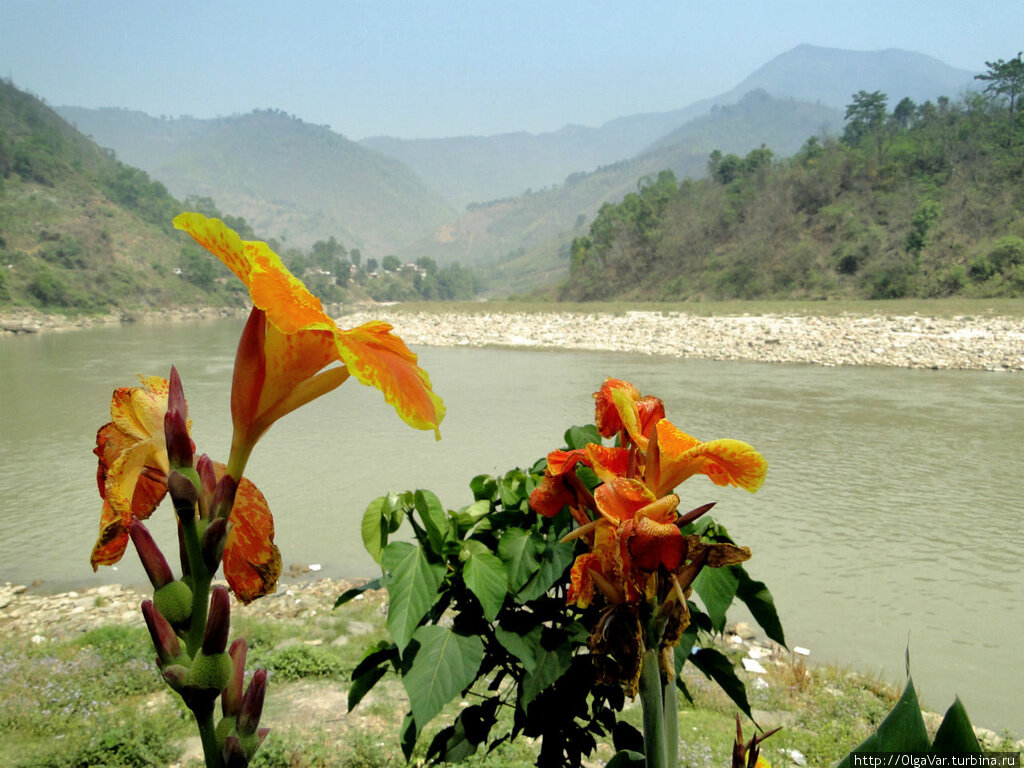 Поэтому выбираем нечто среднее между первым и вторым — переезд рейсовым автобусом, который довезет нас до конечного пункта за 6 часов. Способ, в общем-то, хорош тем, что экономичен, заодно он позволит, хоть и мимолетно, на колёсном ходу, всё же, немного познакомиться с провинциальной жизнью, которая здесь у всех на виду. Из долины Катманду дороги разбегаются в нескольких направлениях: на юг ведет шоссе Трибхуван, на восток – Аранико-шоссе. А наш путь лежит в противоположную сторону: к северо-западу по шоссе, повторяющем изгибы реки Трисули, что возникла перед глазами, как только мы перевалили за какой-то хребет. Любопытно, что дорога частично повторяет победоносный путь, который в долину Катманду совершил король гуркхов — Притхви Нарьян Шах, объединивший во второй половине 18 века разрозненные княжества в единое королевство Непал. Поэтому не случайно, шоссе названо в его честь. Притхви-шоссе длиною 174 километра начали строить в 1967 году не без содействия и помощи китайцев, но строительство затянулось аж на 7 лет, до 1974-го года. Если припомнить, это было как раз время «культурной революции» в соседнем Китае.