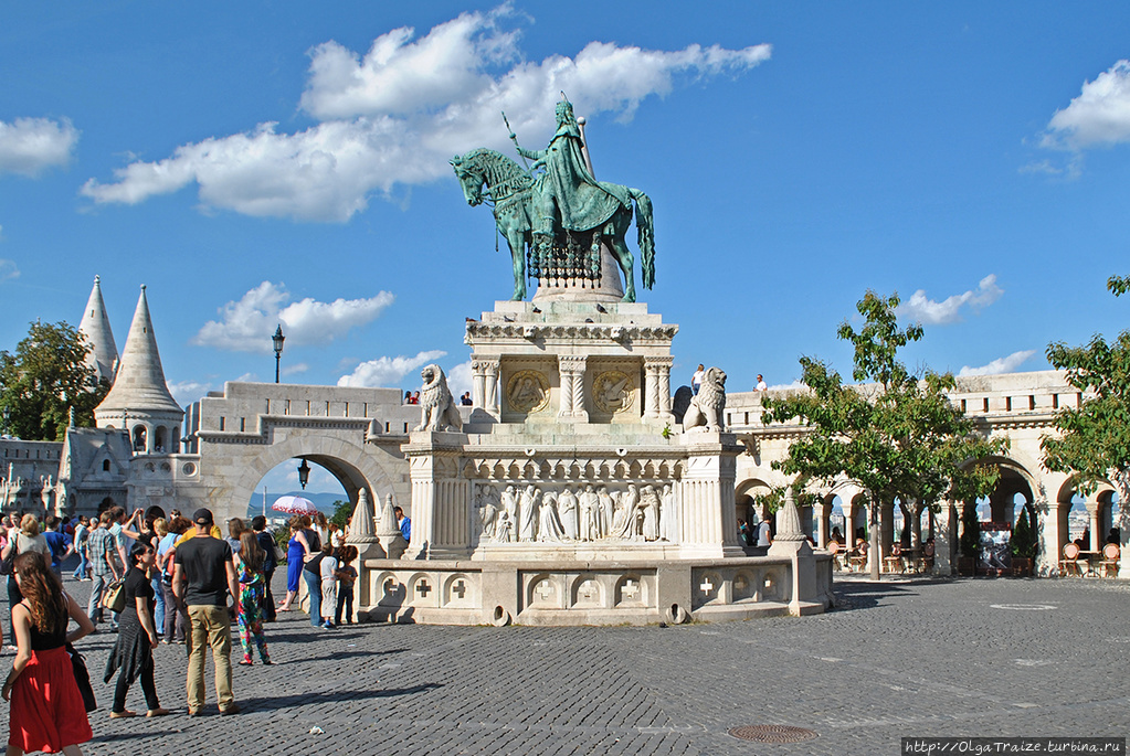 Расположен памятник основателю венгерского государства за Церковью Святого Матьяша, и перед Рыбацким бастионом. Установили его в 1906 году, по проекту скульптора Алайоша Штроблема.