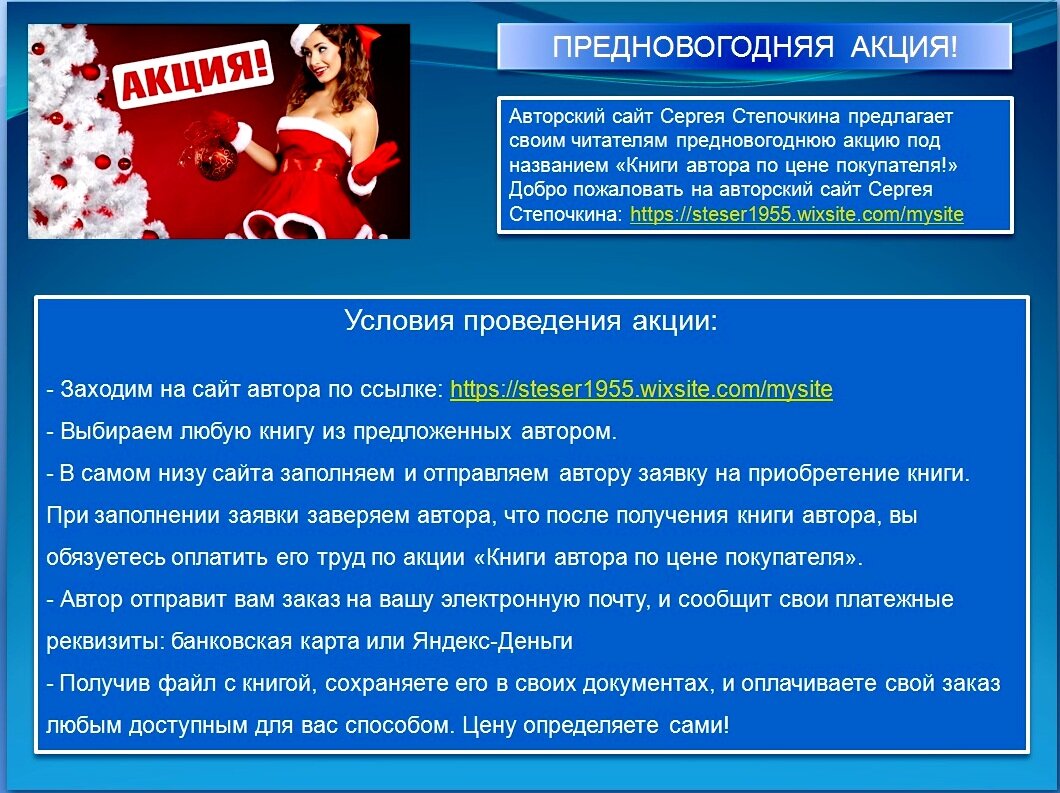Ссылка на авторский сайт Сергея Степочкина: https://steser1955.wixsite.com/mysite