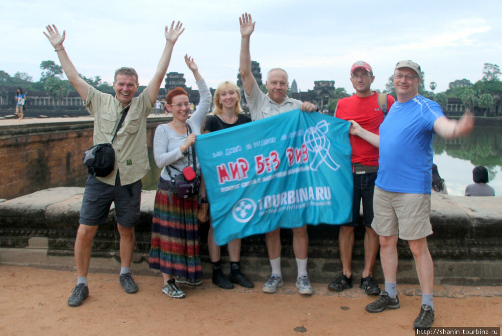 На входе — вернее, на въезде — на территорию храмового комплекса построили монументальные билетные кассы. Стоимость билетов вот уже практически 10 лет остается неизменной — 10 долларов США (оплата только долларами — или евро, по грабительскому курсу, евро здесь пока не в чести). Но прогресс идет. И сейчас даже на однодневных билетах помещают фотографию — фотографирую тут же, прямо у окошка кассы. Любая экскурсия по храмам Ангкора начинается с посещения Ангкор-вата. Туристов сюда обычно привозят к рассвету. Мы немного задержались на старте, поэтому сам восход солнца пропустили. Хотя жалеть было и не о чем — на небе такая плотная облачность, что солнечный диск все равно разглядеть нельзя. Ангкор-ват со всех сторон окружен широким крепостным рвом, заполненным водой. Попасть на территорию храмового комплекса можно только по длинной и широкой каменной дамбе (вероятно, это уже в наше время построили для удобства туристов, а в древности здесь был подвесной мост). На дамбе охранники у всех спрашивают билеты, хотя фотографии на них тщательно и не разглядывают. Ангкор-ват поражает своими гигантскими размерами и полной симметричностью — на все четыре стороны света. Ангкор-ват официально признан крупнейшим в мире культовым сооружением. Даже самого его название Ангкор-ват означает «город — храм», что сразу же говорит о масштабе. И действительно, на территории 200 гектаров, которую занимает Ангкор-ват, мог бы разместиться почти любой средневековый европейский город. А здесь — только один храм. Изначально он был посвящен индуистскому богу Вишну, божественному покровителю империи кхмеров. По своей структуре Ангкорват можно рассматривать как гигантскую индуистскую космогоническую модель Вселенной. В центре всего мироздания стоит гора Меру — обитель всех многочисленных индуистских богов. Меру окружена водами Мирового океана, в котором плавают материки. Границы океана образованы горными хребтами и скалистыми горами. Внутри горы Меру спрятан фаллос Шивы (лингам) — в индуизме это был символ животворящей силы.Средневековые строители смогли добиться интересного эффекта: чем ближе подходишь к храму, тем значительнее и монументальнее кажется его центральная часть с пятью башнями-святилищами (одна в центре и четыре по краям верхней террасы). Интересно, что главный фасад обращен на запад, а дороги подходят с востока, севера и юга. Однако, с какой бы стороны не подходишь, всегда видны только три башни из пяти. Этот эффект достигается за счет того, что основание храма приподнято на высоком цоколе, окруженном колоннадой.Структура самого храма очень сложная — видимо, она отражает сложность взаимоотношений между многочисленными индуистскими богами. В нем множество коридоров, галерей, лестниц и переходов. Все внутренние галереи первого уровня украшены 2-метровыми барельефами с мифологическими сценами и сценами из жизни древних кхмеров.