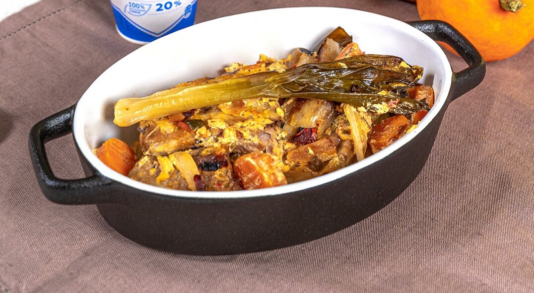 Жаркое из свинины в чесночно-сметанном соусе по рецепту Константина Ивлева.
