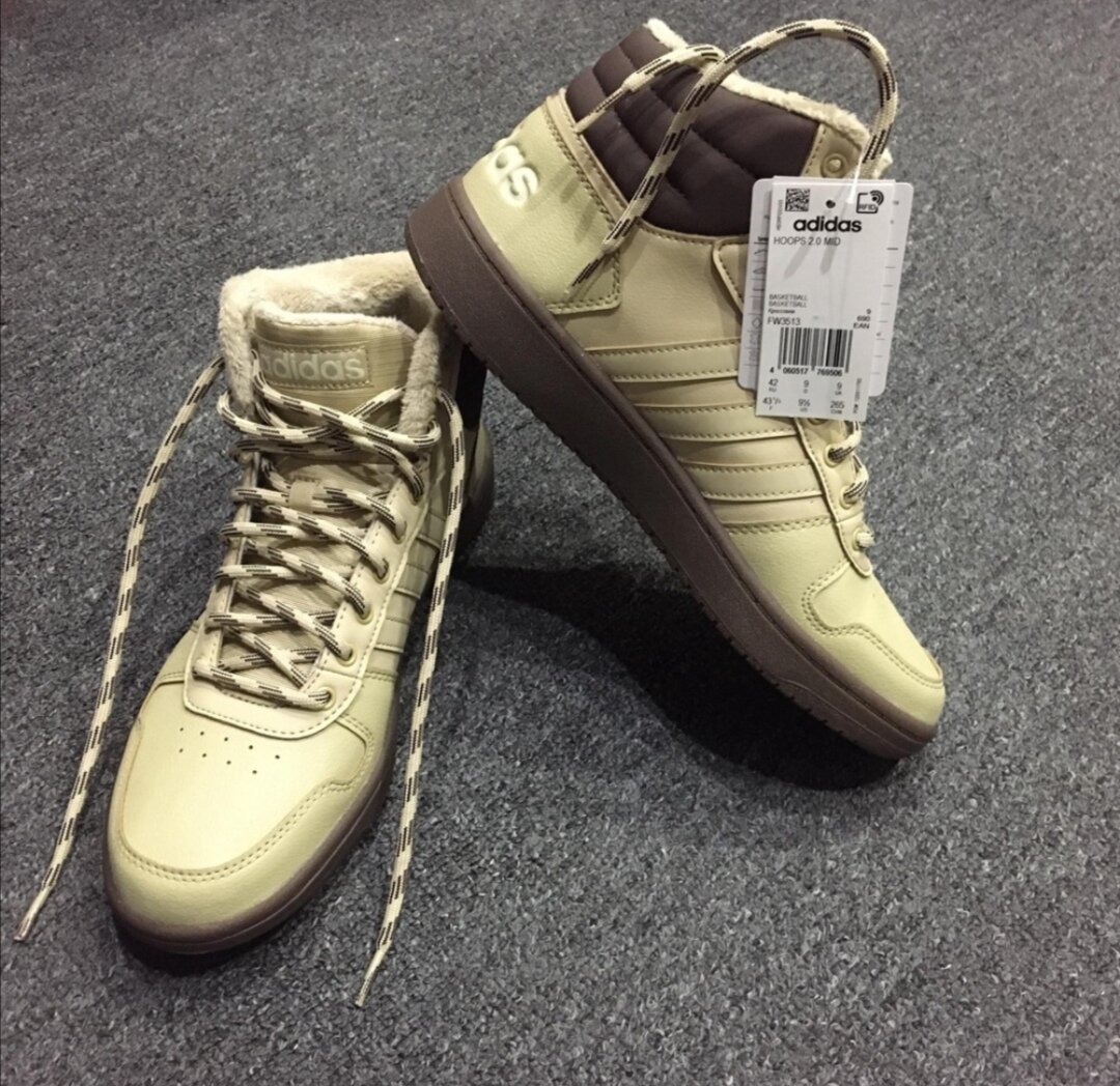 Модель adidas hoops2.0 mid утеплённые кроссовки и выполнена под баскетбольный силуэт. Особенности: Прочный высокий верх из искусственной кожи , Подкладка на подобие флиса но не эко мех, укрепленная пятка, есть очень много цветов.