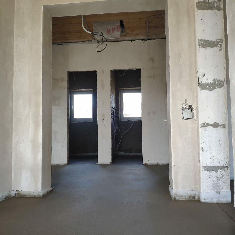 Про технологии нанесения штукатурки и полусухой стяжки пола машинным способом уже описано здесь