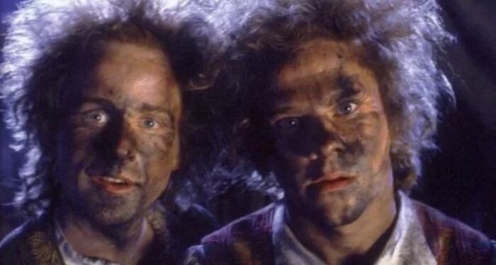 По фильму они встретились с Фродо в момент, когда воровали кукурузу у фермера. По книге же вся четверка хоббитов воссоединилась ещё в Шире, случайно разузнав (опять же из-за своего крайнего любопытства), что у Фродо волшебное кольцо и он отправился из-за него в поход.