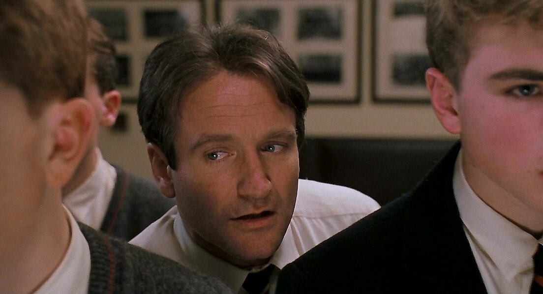 Небольшой забавный анахронизм. Действие в фильме происходит в 50-х. При этом Джон Китинг цитирует Шекспира, подражая Марлону Брандо из фильма «Крестный отец», который вышел в 1972 году. В этот момент вспоминаешь, что Робин Уильямс прежде всего комик.