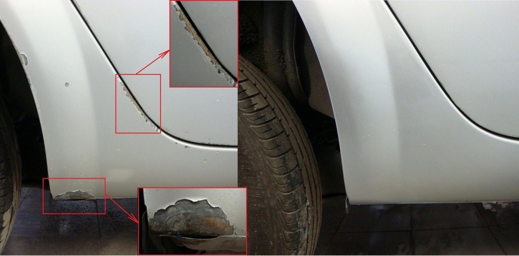С наступлением тепла авто нужно тщательнейшим образом вымыть, а после водной процедуры — просушить. После просушки обработайте все сколы, трещины и царапины красящим карандашом. Неплохой экспресс-способ замазать мелкие сколы — обычный лак для ногтей.