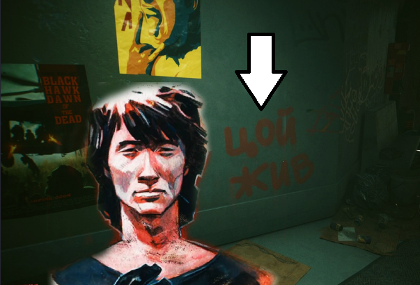 В одной из локации внимательные игроки могли заметить знаменитый слоган многих настенных граффити - "Цой жив", хотя надпись на самом деле особо и не маскируется, мы полагаем что CD