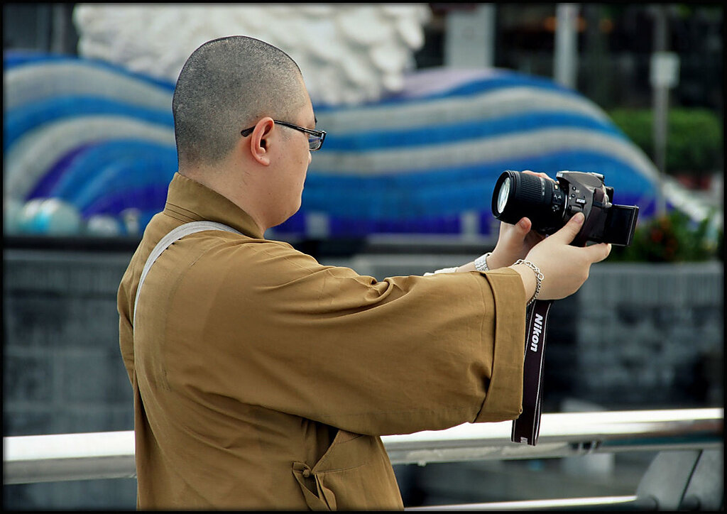 В этом месте я видел много интересных людей. Однажды пришла толпа каких-то молодых монахов. Фотографировали сначала друг друга, потом начали самостоятельно снимать себя на фоне Мерлиона.