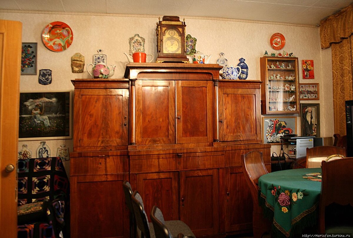 Осталась спальня Марии Владимировны. Но там, по непонятным мне причинам, снимать не разрешают. А может и к лучшему:) увиденное заставляет шевелится волосы на голове от ужаса:)) Только представьте себе: стены, цвета запекшейся крови, плотно задернутые бордовые шторы, горящая лампадка, иконы во всю стену, фотографии, вперемешку со всякой всячиной, которой Миронова любила украшать все вокруг:)) Мне ее спальня напомнила комнату купца Рогозина из "Идиота" Достоевского:) Вот примерно так, как на этом фото, только здесь совсем не видно темнокрасного цвета:)Фото из сети