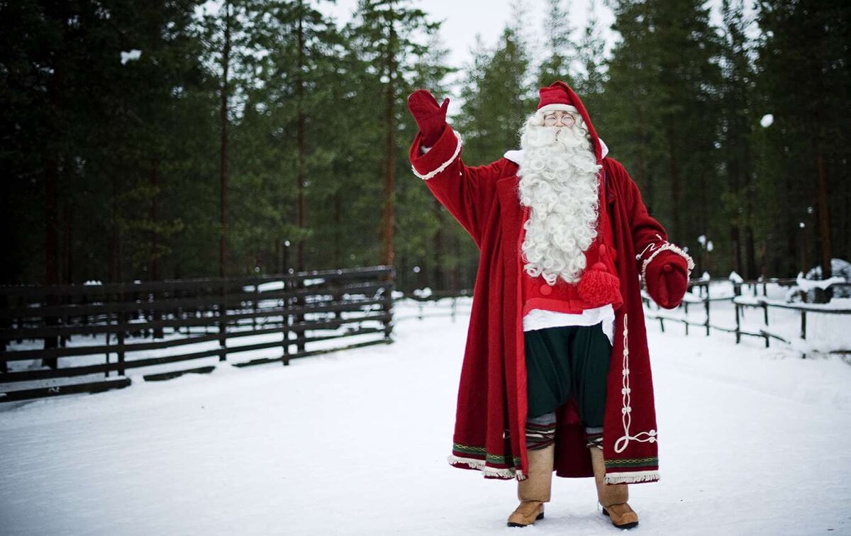 Йоулупукки, что по-фински "рождественский козёл". А такое имя он приобрел благодаря деревенским жителям, которые надевали шкуру козла и разносили по домам подарки. Поговаривают, что именно эти "хулиганы" спугнули настоящего Санту, который больше не гуляет по улицам, а сидит в своей резиденции, где и принимает всех желающих.