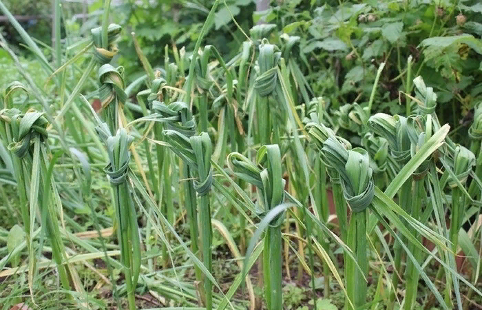 Заглянув в огород к соседям, многие неопытные и начинающие дачники видят там весьма необычное зрелище – листья озимого и ярового чеснока завязаны в узел. Удивительно то, что некоторые из тех, кто так делает, сами до конца не понимают, для чего на самом деле нужно завязывать листву в узел. В большинстве случаев на этот счет можно услышать комментарии в духе «еще бабушка так делала» или «всегда так делали, чтобы чеснок лучше хранился». Но так ли все это на самом деле?