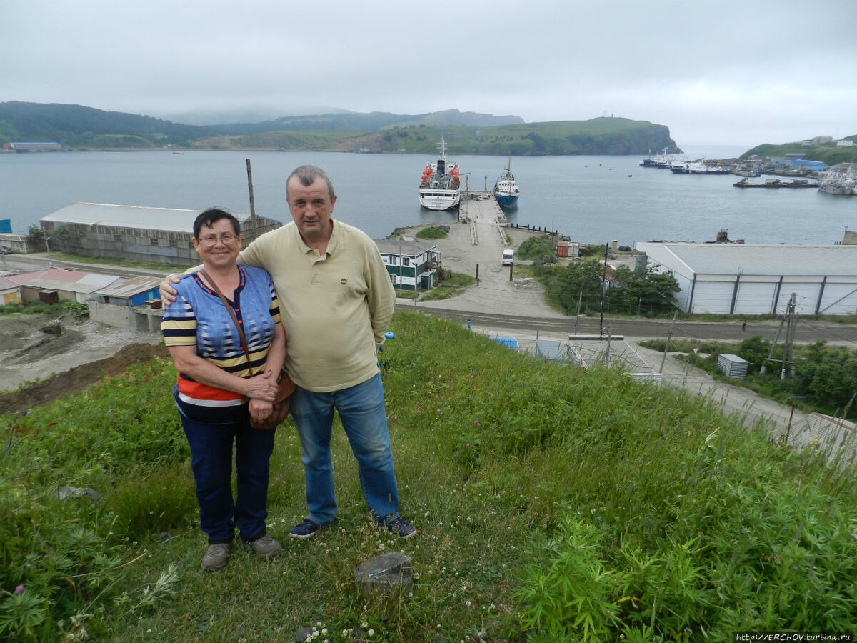 Зато могу подтвердить, что бухта Малокурильское имеет идеальное предназначение для гавани. Бухта представляет собой большое блюдце воды с трёх сторон окружённое сопками. С четвёртой стороны у входа две скалы напоминают часовых. По большому счёту это действительно так, ибо без пароля, без знания местной лоции, войти сюда проблематично. Наш «Игорь Фахрутдинов» уверенно заходит в бухту. Здесь не столь силён ветер и меньше волна. Кажется, здесь прячутся не только корабли, но и дома, разбросанные по сопкам. Впереди показался причал, а слева замелькали выстроенные в ряд новенькие пограничные корабли. Увидев оные, невольно удивляешься состоянию рыболовецкого траулера «Капитан Ласков». Ржавая посудина ужасающего вида пришвартована к причалу. Логично было бы обнаружить на судне экипаж матросов из Бангладеж, каких-то камбоджийцев или ещё что-то подобное. Однако нет, это наши российские рыбаки. Хозяин судна экономит на всём. Рыболоведческая отрасль переживает не самые лучшие времена, и недавняя трагедия в Охотском море яркое тому подтверждение. У самого края воды возвышается ангар. Корабли встречает надпись – СЛАВА ПАРТИИ *** — третье слово закрашено. По теплоходу слышатся команды, суетятся матросы, на берегу нас уже ждут пограничники. Часть пассажиров, собрав вещи, приготовилась выходить. За эти короткие мгновения один местный парень по имени Женя, успел рассказать мне о своём житие-бытие на острове Шикотан. Когда-то здесь снимали эпизоды фильма «Жизнь и удивительные приключения Робинзона Крузо». (На противоположной стороне острова есть достопримечательность – мыс Край Света. Л.Куравлёв стоит возле тех скал, и это символизирует его отрезанность от внешнего мира).Фото из интернета.