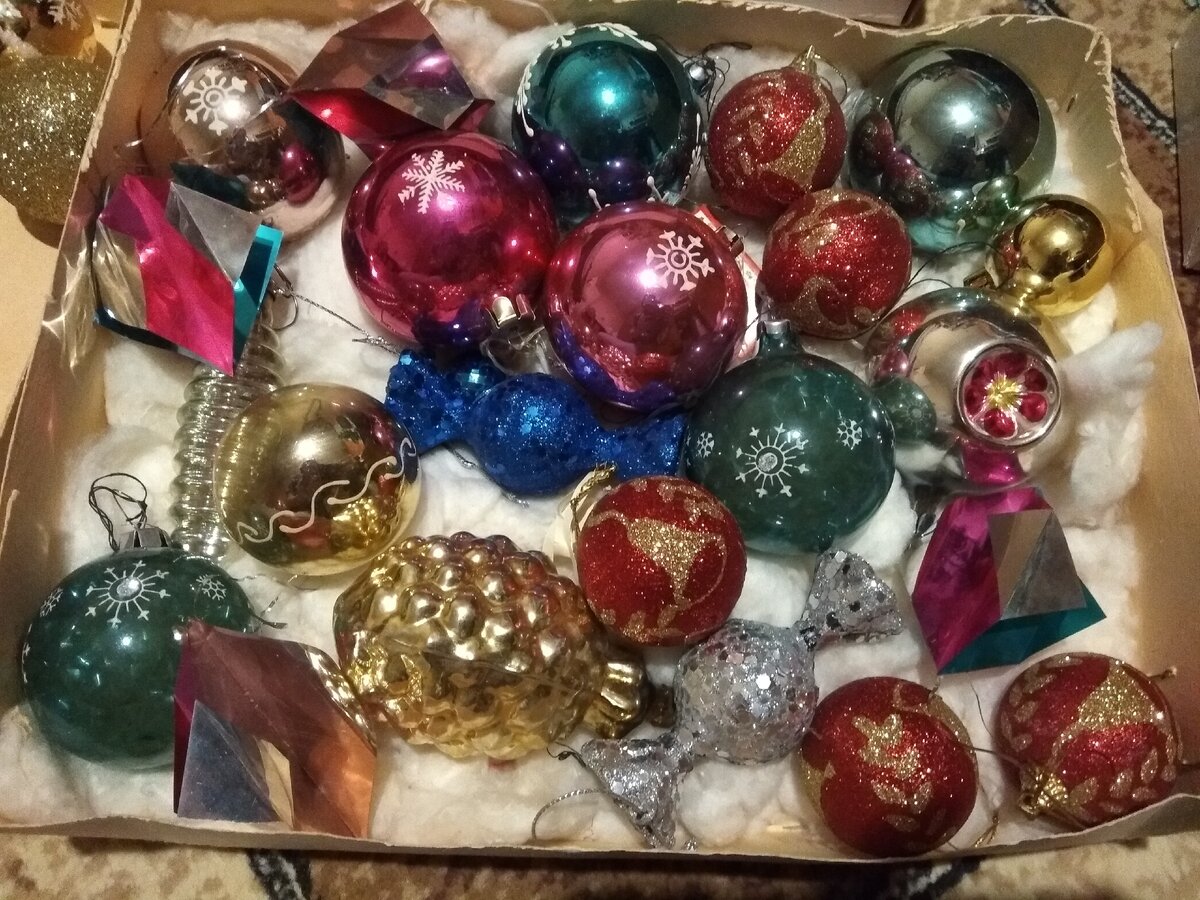 Нашла на антресолях коробку со старыми, стеклянными ёлочными игрушками. Делюсь с вами, мои дорогие читатели, фотографиями своих ёлочных игрушек советского времени☺ К сожалению, их осталось не так много. Стеклянные игрушки часто бились и уцелели самые стойкие💪