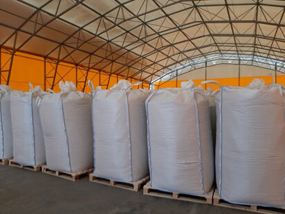 Строительство склада началось летом 2020 г, а в ноябре завершился его монтаж. Потребность в складском помещении стала актуальной через полгода после начала выпуска древесных топливных гранул, которые производятся на предприятии с осени 2019 г.