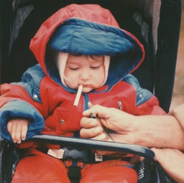 Отлично помню, как мне, тогда двухлетнему, сидевшему в коляске малышу, дед, хрипловато посмеиваясь, засунул в рот сигарету и поднёс зажигалку, разумеется, не поджигая её. Разумеется, только ради фотки.