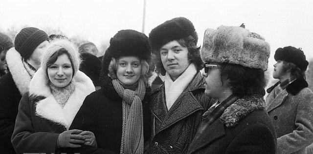 граждане высшего класса могли позволить себе пыжиковые шапки. Зимняя обувь у мужчин в основном была ботинки, ну а женщины конечно же предпочитали сапоги...А вот возможность обзавестись Итальянскими сапожками была далеко не у всех. Но желание обладать чем-то «заграничным» конечно же была у всех.. В конце 70х были очень модны итальянские сапожки с длинным, по колено, голенищем Мохеровый шарф , являлся главным атрибутом зимнего гардероба. Это единственная вещь которая добавляла красок к зимней одежде.