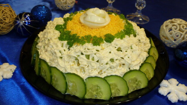 Отваренное заранее и остуженное куриное филе нарезаем кубиками или соломкой