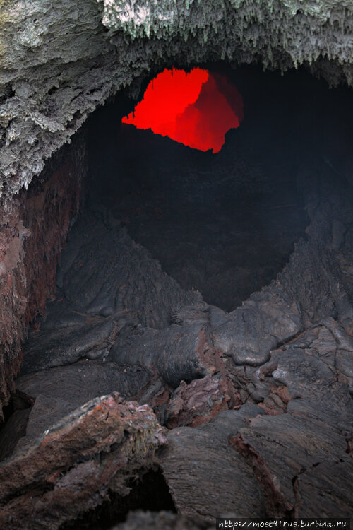 1.* «...Должны совпасть несколько условий. Лава должа очень резко переходить из текучего в твердое, жесткое состояние. Поток должен образовать русло, борта которого больше его ширины. Тогда поверхность потока, вместе с крупными обломками породы, плывущими по поверхности, начинает остывать, затягиваясь образует корку. А движение лавы внутри продолжается по этим каналам. Как только подача извергающегося материала прекращается, образуются естественные пустоты, каналы и пещеры.