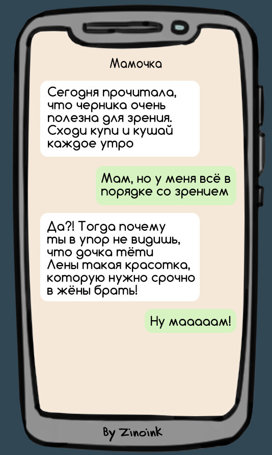 В этот понедельник я придумал здесь #смс переписки с мамой, в которых она заботится о здоровье и просит надеть шапку, причем делает это довольно настойчиво. Так сказать, причиняет свою заботу окружающим.