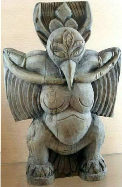На многих статуэтках и рисунках гаруда изображен с рогами и немного напоминает "старых людей" (см. также здесь и здесь) из "Пополь-Вух" и других произведений майя, науа и ацтеков, и мифического василиска. Все они отличались внушительными размерами, имели большие крылья, как правило, обладали птичьим клювом и перепончатыми лапами, "носили" рога.