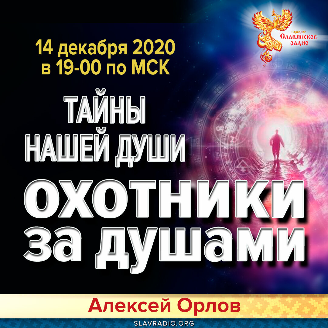 Запись живой встречи с Алексеем Орловым 14 декабря 2020 года в 19-00 по Московскому времени по теме «Тайны нашей Души. Охотники за душами».