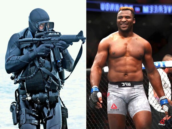 Рукопашный бой-это часть подготовки тюленя. Борьба с людьми без оружия-это не то, что они делают, и не то, за что им платят. Типичный морской котик смертельно опасен своими руками и может избить любого. За исключением настоящего профессионального бойца, чьей единственной целью в жизни является борьба. А профессиональные бойцы живут и дышат боем. Все дело в их рефлексах, мышечной памяти. Борьба - их профессия. Это все, что они делают.