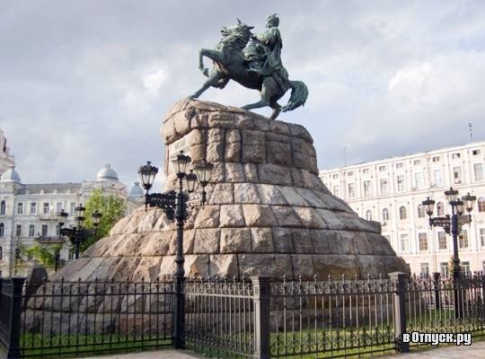 Каждый, кто попадает на Софиевскую площадь Киева, не может не заметить ещё один шедевр, расположены там. Это – памятник самому известному гетману Украины, поднявшему народ на освободительную войну, Богдану Хмельницкому.