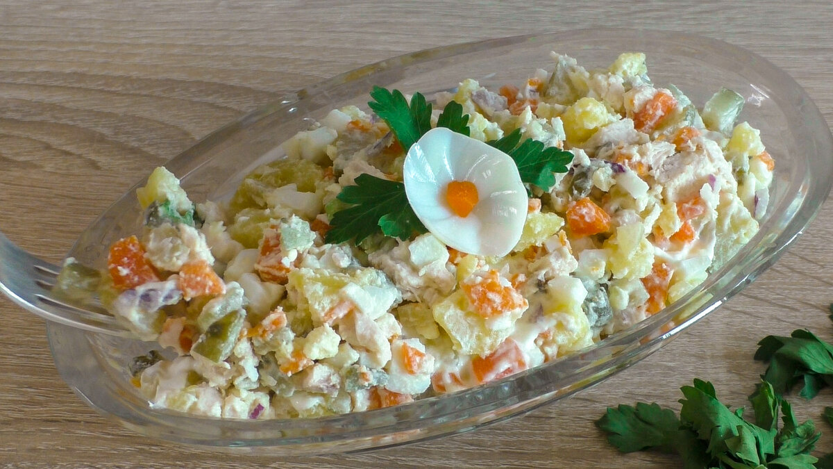 В нашей семье салат "Оливье" готовят исключительно по этому рецепту