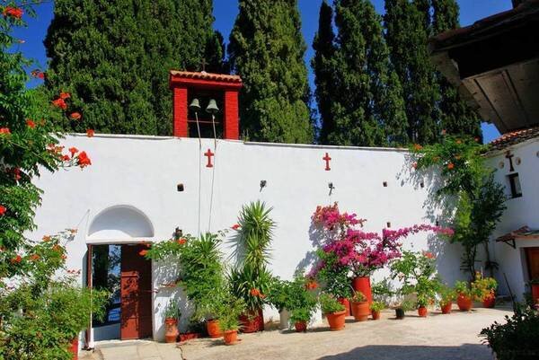 Монастырь Сотирос, который находится приблизительно в 7 км от главного города острова, расположен на холме с прекрасным видом. Это одно из самых спокойных мест на всем острове, окружающую тишину нарушают лишь журчание родников и голоса птиц.