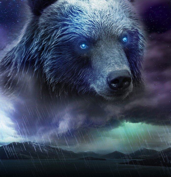 Прижимая к себе заветную пластиковую бутыль, Агафья подошла к окну и сделала это вовремя. Сверкнула молния, осветив за стеклом лохматую медвежью образину с горящими жёлтыми глазами и оскаленной пастью. От её вида хотелось немедленно, как в детстве, забиться под кровать, стуча зубами от страха.