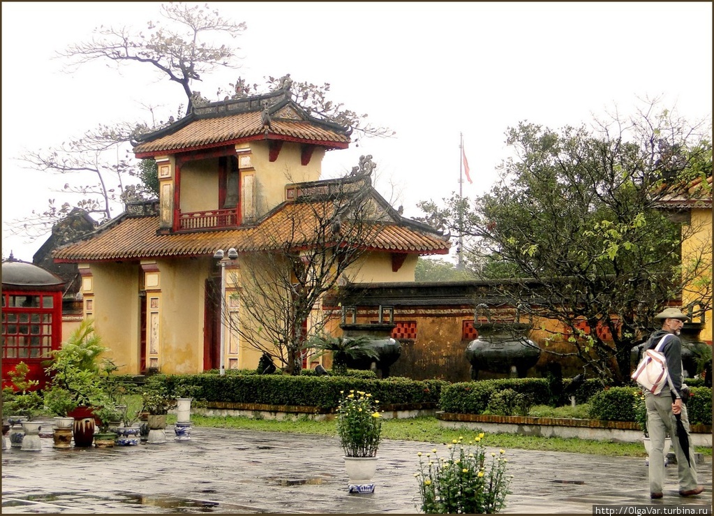 Дождь накрапывал весь день, то усиливаясь, то затихая, но не смог заставить отказаться от экскурсии в Запретный город, построенный в Хюэ с поистине королевским размахом во времена правления императора Жа Лонга, основателя династии Нгуен. Это целый комплекс дворцов, где проживали только члены королевской семьи и императорские наложницы. Ну, еще