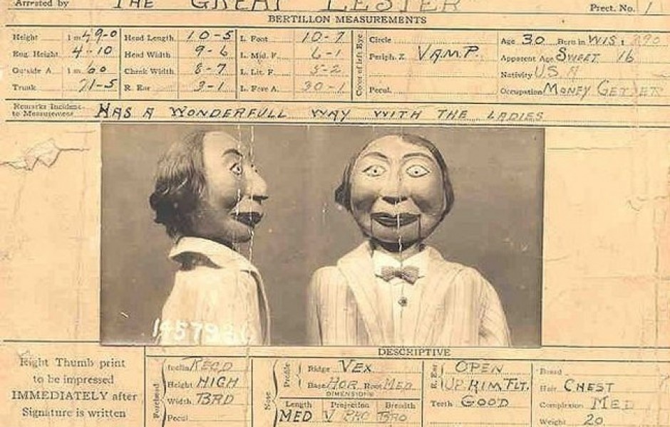 Невероятно, но это доказанный факт, что преступником может стать и деревянная кукла. На фото снизу изображена кукла Фрэнк Байрон-младший, сделана фотография в полицейском участке в Детройте. Принадлежала она величайшему чревовещателю всех времен и народов Великому Лестеру. Лестер был первым кукольником.
