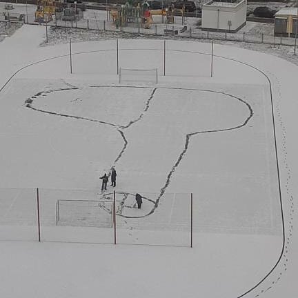 Ночью неизвестные пробрались на территорию школьного стадиона и изобразили на снегу фаллический символ гигантских размеров.