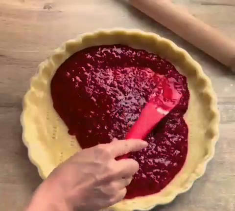 Варить варенье или взять готовое. Ягоду, не размораживая, нагреть с сахаром и после закипания и полного растворения сахара снять с огня. Если жидкое, добавить крахмал.