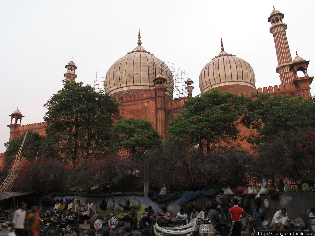 Примерно за час до захода солнца мы вышли на станции «Чандни Чоук» на одноимённую улицу и первое, что увидели, как разгневанная женщина в сари бьёт по лбу молодого парня, а вокруг собирается толпа зевак, и это были отнюдь не съёмки классической болливудской мелодрамы. У нас не было времени на подобные представления, поскольку на этой улице и в непосредственной близости от неё сконцентрировались интереснейшие культурные объекты: мечеть Джама Масджид (куда нас не пустили из-за намаза), сикхская гурудвара (в которую мы почему-то не решились войти сами), Красный Форт – цитадель Великих Моголов, откуда они угнетали массы трудового народа до пришествия новых колонизаторов с Туманного Альбиона, и джайнистский храм с госпиталем для птиц (не посещён по гигиеническим причинам, ибо внутрь пускают только босиком, а мой попутчик уже не понаслышке был знаком с грибками, живущими в подобных культовых сооружениях). Меня удивила, скорее, не сердобольность джайнов, а странная избирательность их благотворительных акций для мира фауны. Почему они не открыли ещё и лечебницы для пластинчатожаберных или хосписы для рептилий, не говоря уже о приютах для высших млекопитающих — этот риторический вопрос повис в воздухе, который будто прилипал к телу, ибо дневная температура далеко за плюс 30 в Дели не редкость уже в середине марта. У моего друга голова начала нагреваться даже в закатных лучах, а свою кепку он забыл в камере хранения. Ему кое-как удалось покрыться носовым платком, вследствие чего он стал похож на пациента, сбежавшего из того самого птичьего госпиталя. Однако компания индусов, очевидно, приняла его за последнего представителя исчезнувшей древней секты и попросила с ним сфотографироваться.