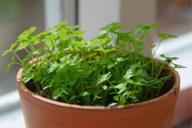 Емкость сразу подбирается большая или горшок или деревянный ящик, но с дренажными отверстиями. Грунт можно использовать универсальный. К температурному режиму не требовательный. Самая подходящая для него температура от +14 до +16 градусов. Когда жарко растение вытягивается и зелень не нарастает. Увлажнять надо обильно.