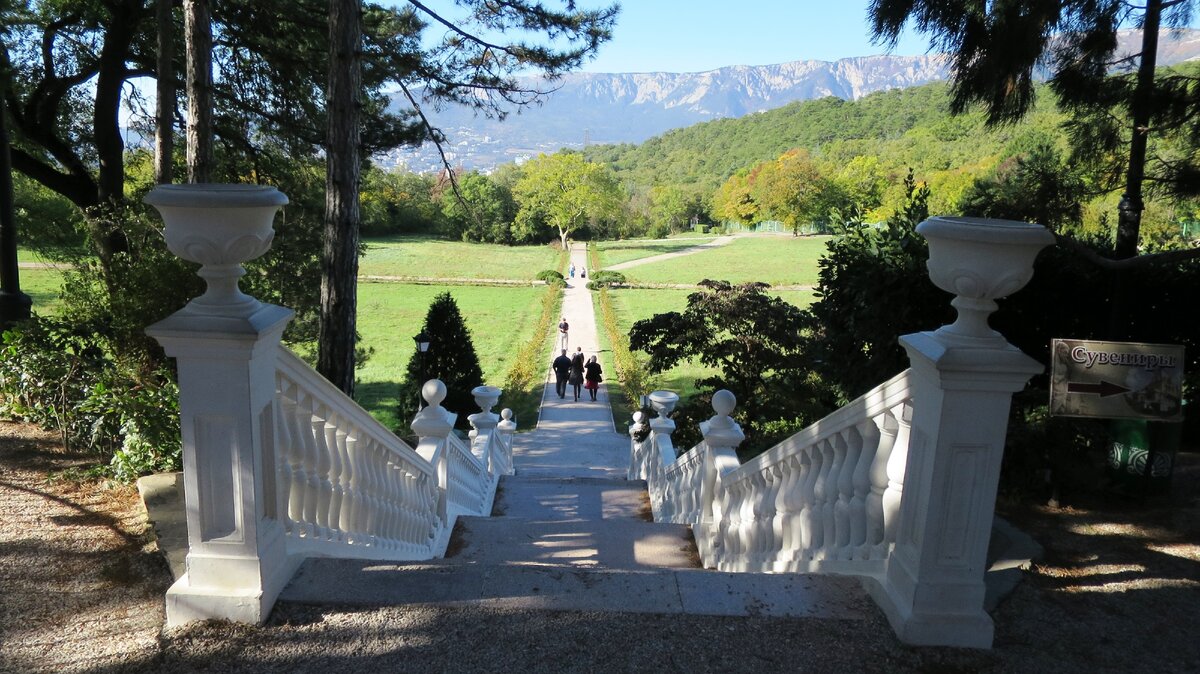 Посещать Массандровский дворец лучше осенью, в октябре, когда девичий виноград, обвивающий подпорные стены и лес на окрестных холмах окрашиваются в яркие теплые тона, красиво контрастирующие с темно-зеленой хвоей секвоий и кедров.