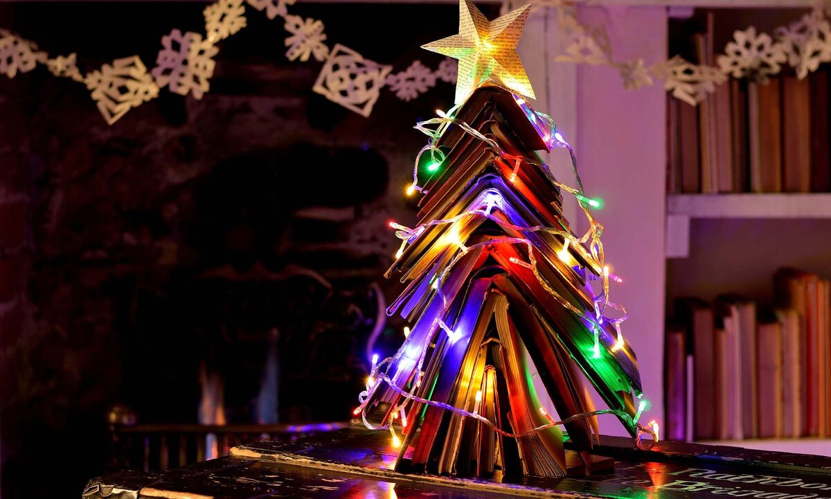 Поклонники минимализма и литературы могут совместить в этой елке любовь к лаконичным украшениям и чтению: для этого придется на время опустошить книжный шкаф. В зависимости от желаемого размера елки выбери необходимое количество книг. Для маленькой елочки на стол хватит 10 томиков стихов, сложенных пирамидой. А вот для более масштабной конструкции понадобится добрая половина твоей библиотеки. С ней твоя гостиная будет похожа на Большой зал Хогвартса.