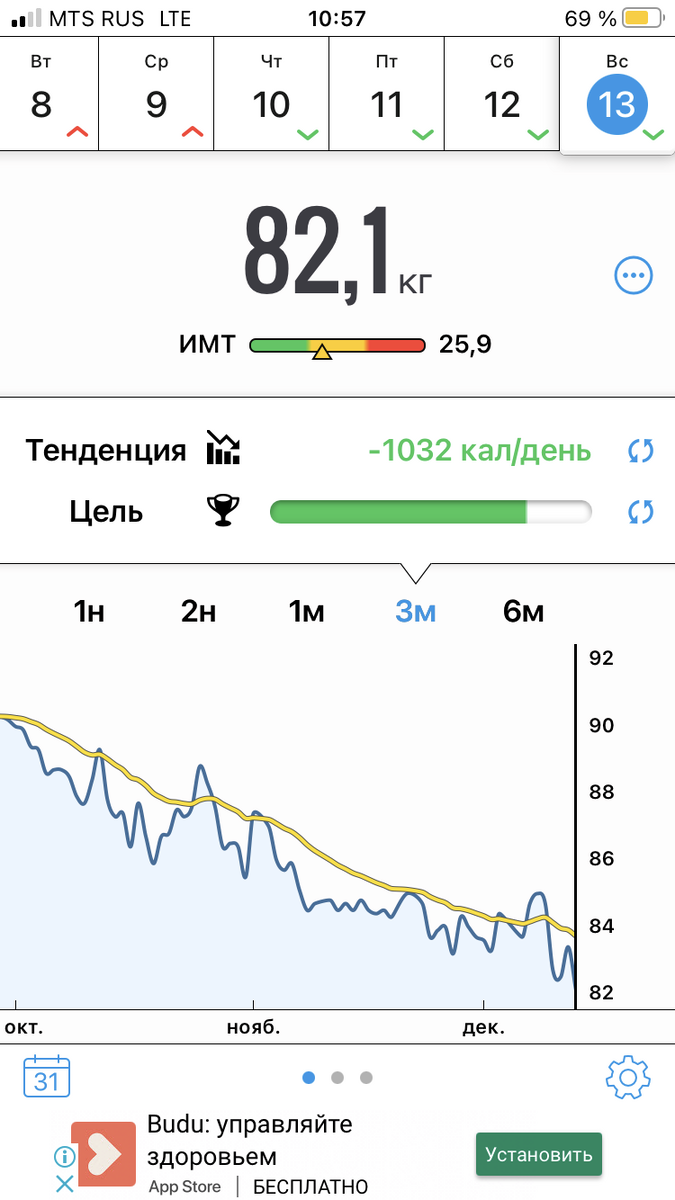 Перейдем к главному. Вчера зафиксировал минимальный вес в 81,7 кг. Но это было в незачетное время.