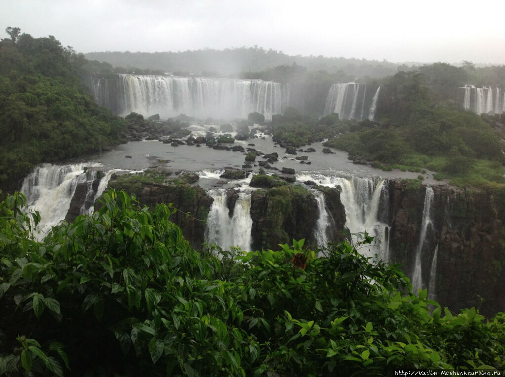 Водопады Игуасу — крупнейшее природное "чудо света" — расположены на границе Бразилии, Аргентины и Парагвая. Здесь насчитывается 275 отдельных водопадов, некоторые из них устремляются непосредственно в котловину, лежащую на 82м ниже. Река Игуасу отделяет Бразилию от Аргентины и впадает в реку Парана, протекающую между Бразилией и Парагваем.