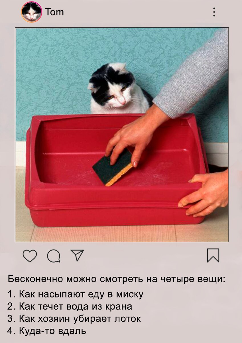 Давайте представим такую вселенную, что наши питомцы стали бы настолько продвинутыми, что для них также были придуманы социальные сети, например, некий альтернативный кошачий Инстаграм. Как вы думаете, что бы они туда загружали, точнее какие фотографии или записи?