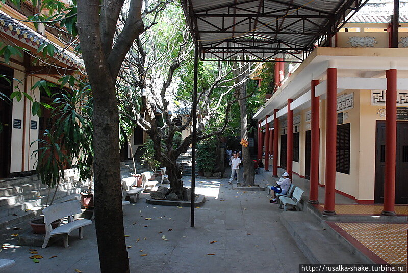 При входе в храм нас окружила толпа воспитанников школы при пагоде, одна девчушка прочно к нам прицепилась в стремлении сопровождать по территории, и предлагая приобрести открытку за вход в храм. Мы вежливо попросили удалиться, объясняя, что спасибо вам, конечно, но самим как-то удобней. В пагоду заходят пионеры в красных галстуках, молятся.