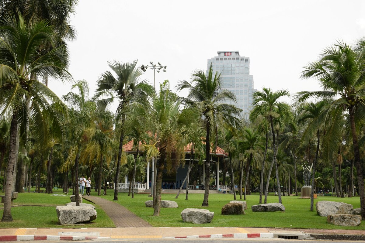 Пробираешься через каменные джунгли, и видишь зеленый оазис в центре мегаполиса издалека. Наш путь до него мы проложили от Каосан роад через тихие улочки университета, но потом столкнулись с небольшим препятствием - от парка нас отделяла широкополосная оживленная скоростная дорога. Но, в одном месте мы нашли регулировщика от отеля, и короткими перебежками преодолели этот путь.