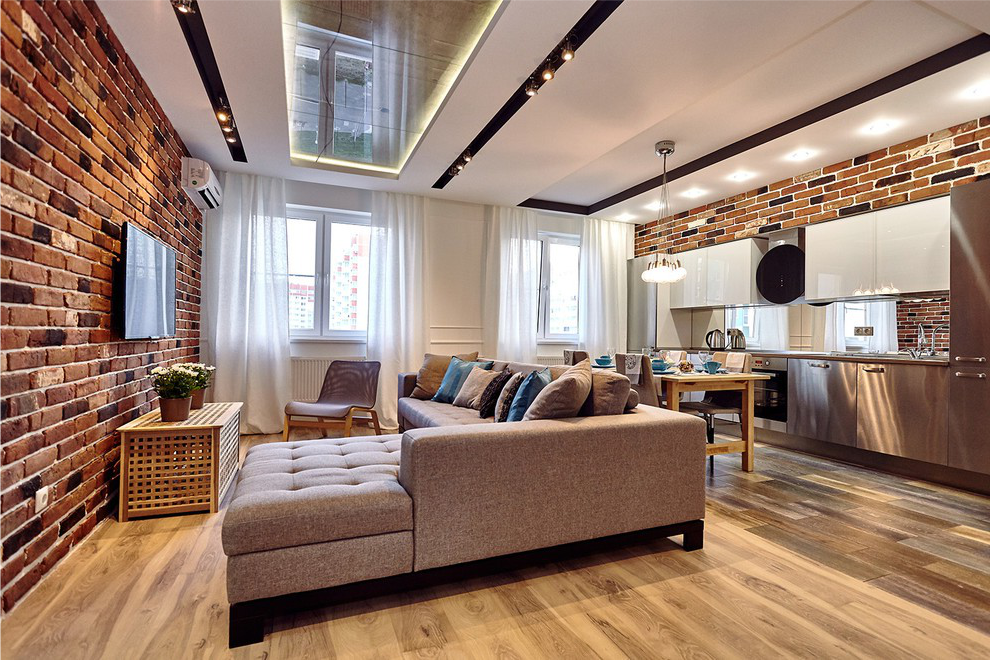 Так как в такой квартире нет лишних стен, разворачивается большой простор для творчества. Легко воплотить в жизнь интересные дизайнерские задумки, смешивая разные стили для разграничения зоны кухни и гостиной. Можно использовать оригинальные перегородки из стекла, дерева или бамбука, придав комнате особую индивидуальность. Ведь здесь вы будете проводить много времени с гостями, друзьями и близкими, поэтому интерьер этой комнаты нужно продумать с особой тщательностью.
