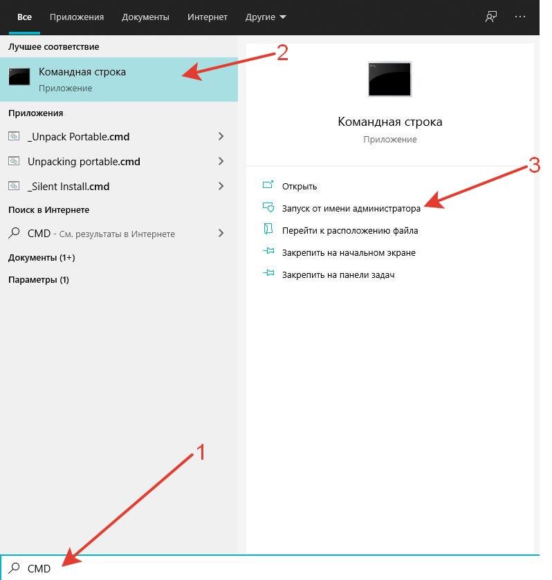 Запустите командную строку от имени администратора (введите CMD в поиске Windows и запустите появившееся приложение)