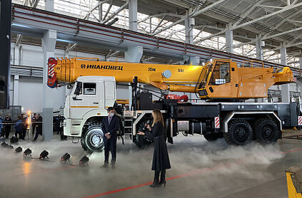Сегодня на Ивановском машиностроительном заводе «АВТОКРАН» состоялась презентация новой модели автокрана КС-6577К-3 грузоподъёмностью 50 тонн. В мероприятии приняли участие губернатор Ивановской области Станислав Воскресенский, директор Департамента сельскохозяйственного, пищевого и строительно-дорожного машиностроения Минпромторга России Мария Елкина, генеральный директор предприятия Игорь Кульган, деловые партнёры и сотрудники «ИМЗ АВТОКРАН».