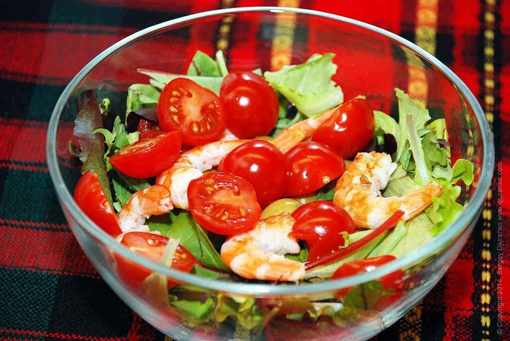 Салат с креветками и помидорами может быть как повседневным, так и торжественным блюдом. Салат “креветки, помидоры, яйца” или салат “креветки, помидоры, сыр” отлично подходит для легкого и полезного завтрака. Еще более полезным будет салат ”креветки, помидоры, огурцы” или салат “креветки, помидоры, перец”. А нарядный салат с креветками, помидорами черри и травами или салат “креветки, авокадо, помидоры” украсит праздничное меню.