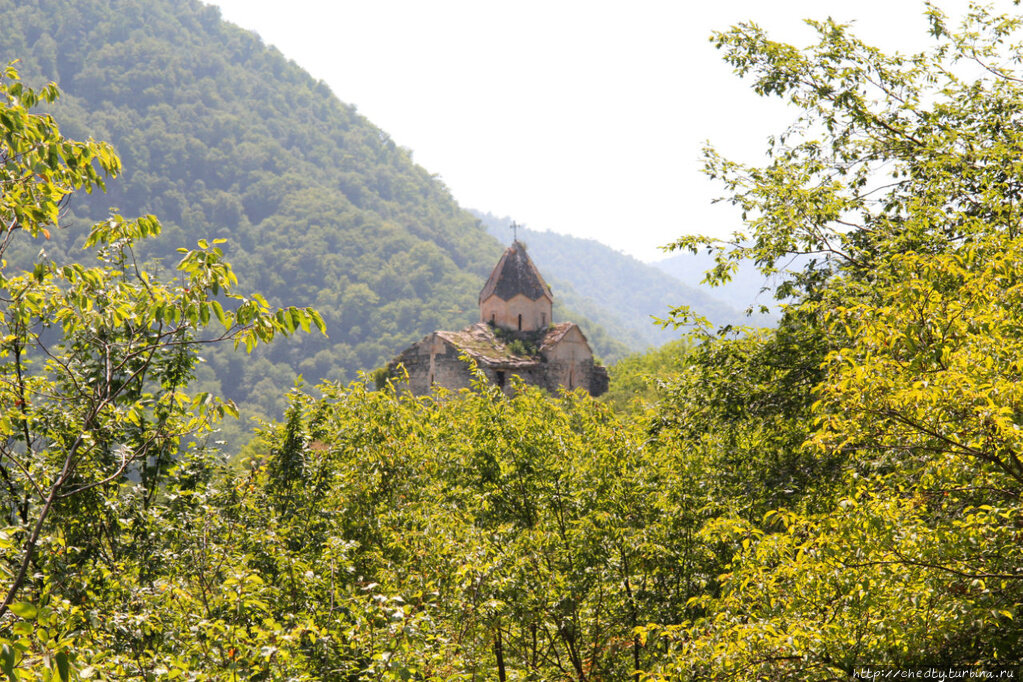 Пешее путешествие по достаточно разреженному и очень красивому лесу доставило огромное удовольствие. Удивило полное отсутствие тропинок. Здесь просто совсем нет людей, зверья тоже почти нет. Видимо, сильно подъели в голодные времена, пустой ореховый и дубовый лес это не типично. Лес без подлеска, много ручьев, удивительно красиво. Шли без груза, да еще под горку, удовольствие в чистом виде. Через Тартар перебрались по какому то печальному мостику. Если бы ребята не сказали, что они по нему месяц назад переходили, я бы не пошел. Как этот мостик ветром не сдуло я не знаю. Крепость Джараберд стоит на вершине высокой скалы на пересечении рек Трхи и Тартар. Она контролирует единственную на добрую сотню километров вокруг дорогу. Джараберд (Водяная Крепость) была здесь всегда. Всегда — это не то что сто лет или тысячу лет, просто всегда. К сожалению не найдена обычная для Армении стела об основании крепости, поэтому точная дата не установлена, но персидские географы еще до нашей эры настойчиво рекомендовали по этой дороге воевать не ходить, т.к. дорогу полностью перекрывают лучники сидящие в крепости и не достижимые для ответных стрел. Опять увидел здесь герб который мне давно не дает покоя, вообще армянская геральдика это совершенно не обыкновенная штука, там целые книги на стенах написаны. Это не из Джараберда, но все равно приведу. А здесь опять две птицы, а над ними солнце. Долгое время монахами интерпретировалось как Бог Отец – Бог Сын на небесах (два голубя и солнце). Один из армянских католикосов, по моему, не самый умный из них, приказал даже везде левую птицу посбивать, дабы усилить идею единобожия. Ответ неожиданно был найден далеко отсюда в Персии. Тот же барельеф и надпись: «Два брата, два свободные орла, равные под солнцем». Девиз династии Аршакуни царей Ассирии и Армении. Когда то ведь предлагали мне работу в Северном Иране, в цене не сошлись. Сейчас бы наверно бесплатно поехал, ведь там можно посмотреть продолжение всего этого, а точнее наоборот начало. Крепостная гора изгрызена подземными ходами. Я сначала подумал, зачем, ослабляют защиту? Хотя если разобраться, что тут страшного, если полезут, спустил вниз тележку камней и дальше пошел. Система укреплений очень навороченная и запутанная. Видно что строительство разновременное. Строили одно на другом, в зависимости от нужд нового времени. Хочу предупредить, когда лазишь по таким и крепостям, нужно быть максимально осторожным. Крепость осматривается снизу-вверх, нужно как можно раньше разобраться с логикой конструкции. Тут понимаете в чем дело, допустим — это самая распространенная конструкция – замок на вершине скалы. За тысячу лет все пересыпало землей выросли деревья и кусты, вы думаете что поднялись на вершину скалы, а реально вы на крыше замка... А теперь попрыгайте... Мы запланировали на крепость час. Не поняли ничего, даже назначения основных сооружений. Пожертвовали обедом полазили еще. Ребят, там надолго. Поеду в следующий раз встану на Тартаре с палаткой, форель половлю и все не торопясь посмотрю. Пока просто понятно, что это мощнейшее оборонительное сооружение. Я вот к примеру лучник плохой, но кирпичом я бы вряд ли промахнулся мимо оппонента, который там идет внизу по дороге. Если вы умеете переправляться через речки по двойными тросам (обезьяннику), перебравшись на д